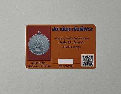 เหรียญจิ๊กโก๋เล็กหลวงพ่อเงิน วัดดอนยายหอม ปี 2506 บล็อกนิยม (อาสนะลอย) พร้อมบัตรรับรอง G