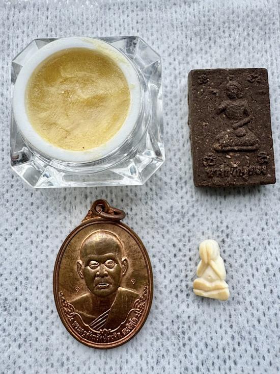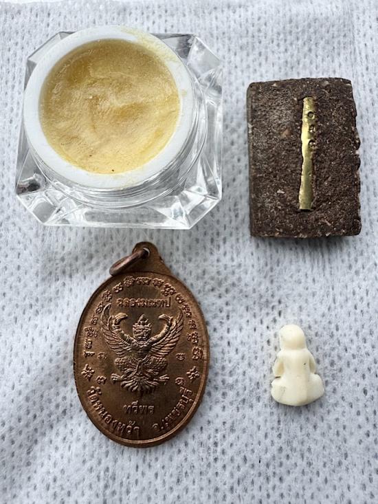 นางกวัก + พระปิดตางาแกะจิ๋ว. สีผึ้ง เหรียญฉลองมณฑปหลังครุฑ หลวงพ่อจิ วัดหนองหว้า สายวัดโตนดหลวง ศิษย์เอก (หลวงพ่อยิด วัดหนองจอก) หลวงปู่แผ้ว วัดโตนดหลวง