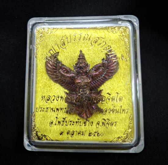 พญาครุฑ สุบรรณสุภฤทธิ์ พ.ศ.2560 หลวงพ่อหวั่น วัดคลองคูณ จ.พิจิตร - เนื้อทองแดงผิวรุ้ง - ยิงเลเซอร์โค้ต และเลขพระ 1224 พร้อมกล่องเดิมครับ