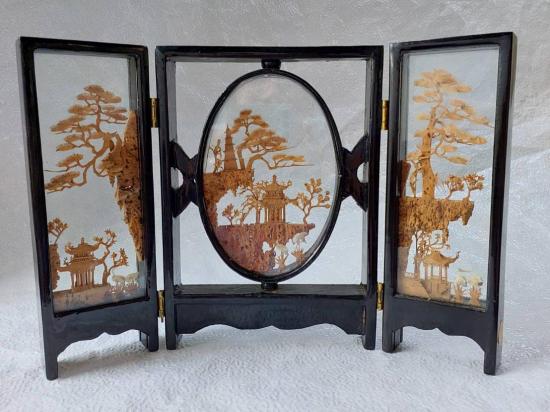 ฉากการแกะสลักไม้ก๊อกของจีน (Chinese cork carving art) หรือที่รู้จักกันในชื่อประติมากรรมไม้ก๊อก ซึ่งเป็นงานศิลปะแบบดั้งเดิมที่แสดงถึงภูมิทัศน์ที่ซับซ้อนและสัตว์ป่า