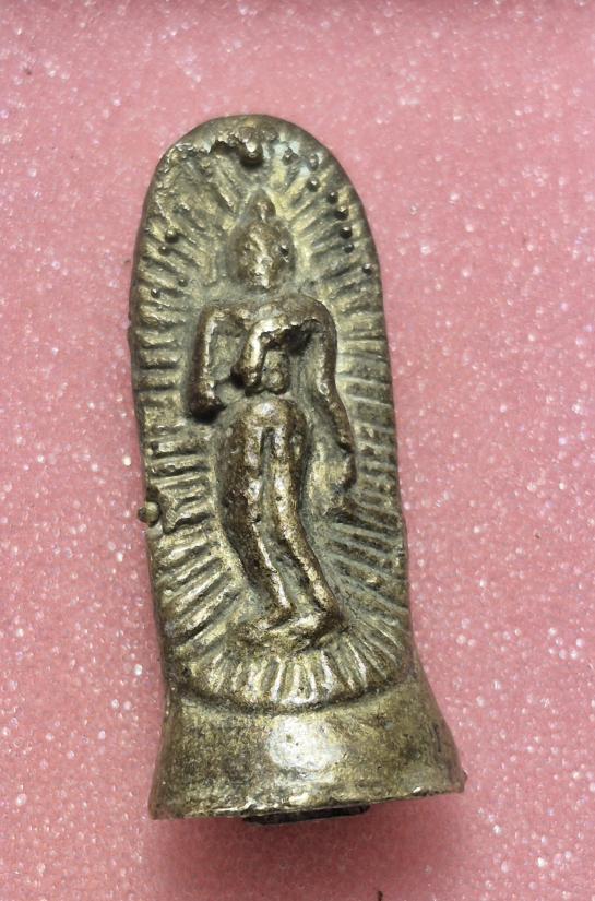 เหรียญหล่อพระลีลา พระครูกาแก้ว วัดหน้าพระธาตุ นครศรีธรรมราช ปี 2485 พิมพ์ใหญ่ |