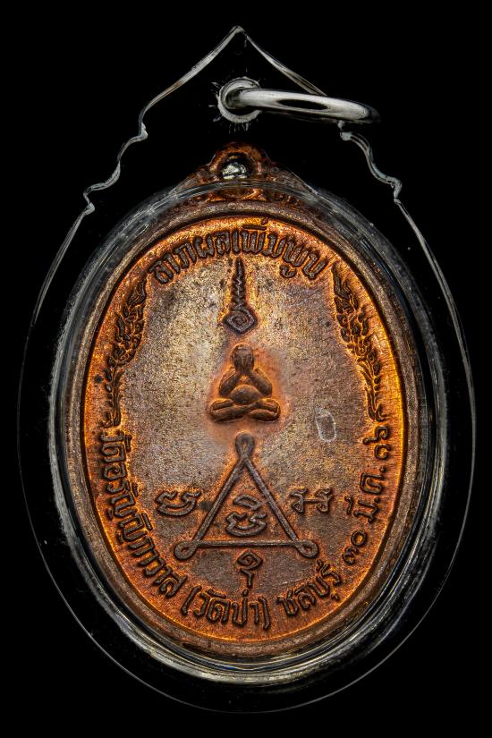 เหรียญพระครูวรพรตศีลขันธ์ (หลวงพ่อแฟ้ม) วัดอรัญญิกาวาส (วัดป่า) จ.ชลบุรี รุ่นลาภผลพูนทวี ที่ระลึกฉลองอายุครบ ๖๐ ปี เนื้อทองแดง ผิวไฟ ปี 2516 รุ่นแรกและสร้างแค่ครั้งเดียว |