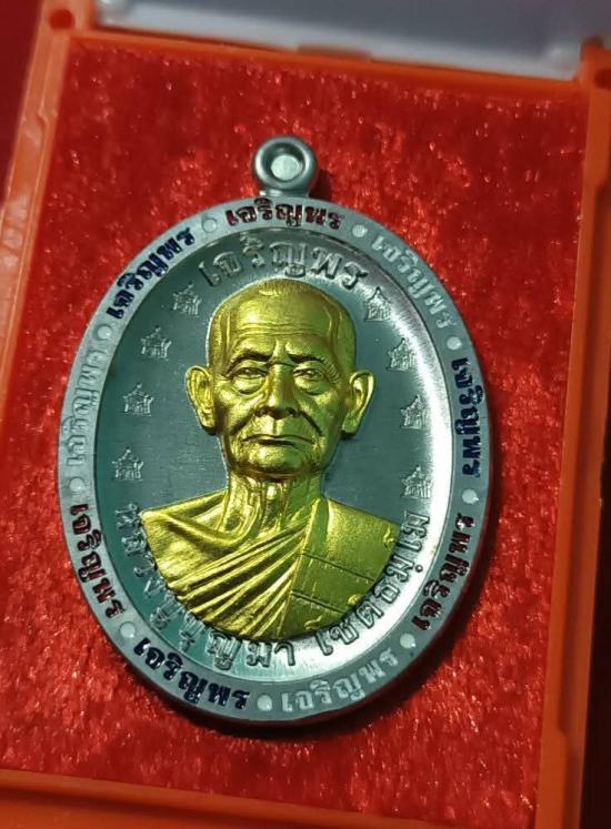 เหรียญเจริญพร7รอบ หลวงปู่บุญมา ตะกั่วหลังเรียบ หน้ากากทองทิพย์ ฝังตะกรุด1ดอก No.122 |
