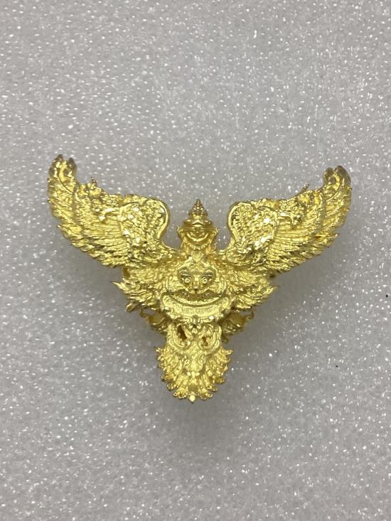 พญาครุฑมังรายศาสตร์ เศรษฐีอนันตทรัพย์ พระอาจารย์วิรุต วัดสันมะเหม้า จ.เชียงราย เนื้อสัมฤทธิ์ชุบทองขัดเงาบางส่วน พิมพ์เล็ก สูง 3 ซ.ม. กล่องเดิม