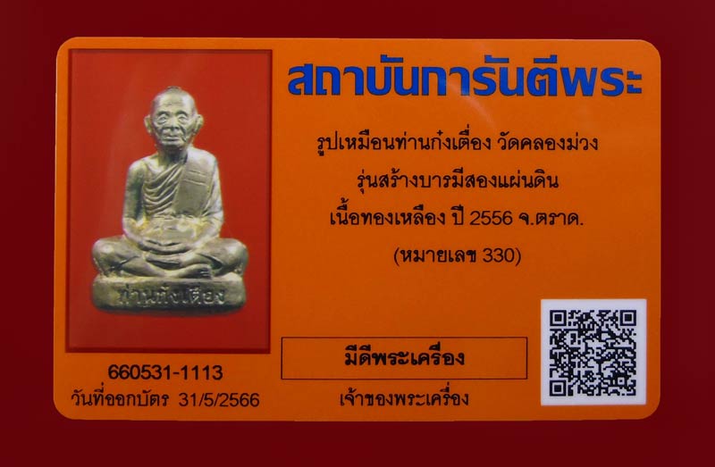 รูปเหมือน เนื้อทองเหลือง ก๋งเตื่อง วัดคลองม่วง จ.ตราด (หมายเลข 330) ปี2556 + บัตรพระแท้ |
