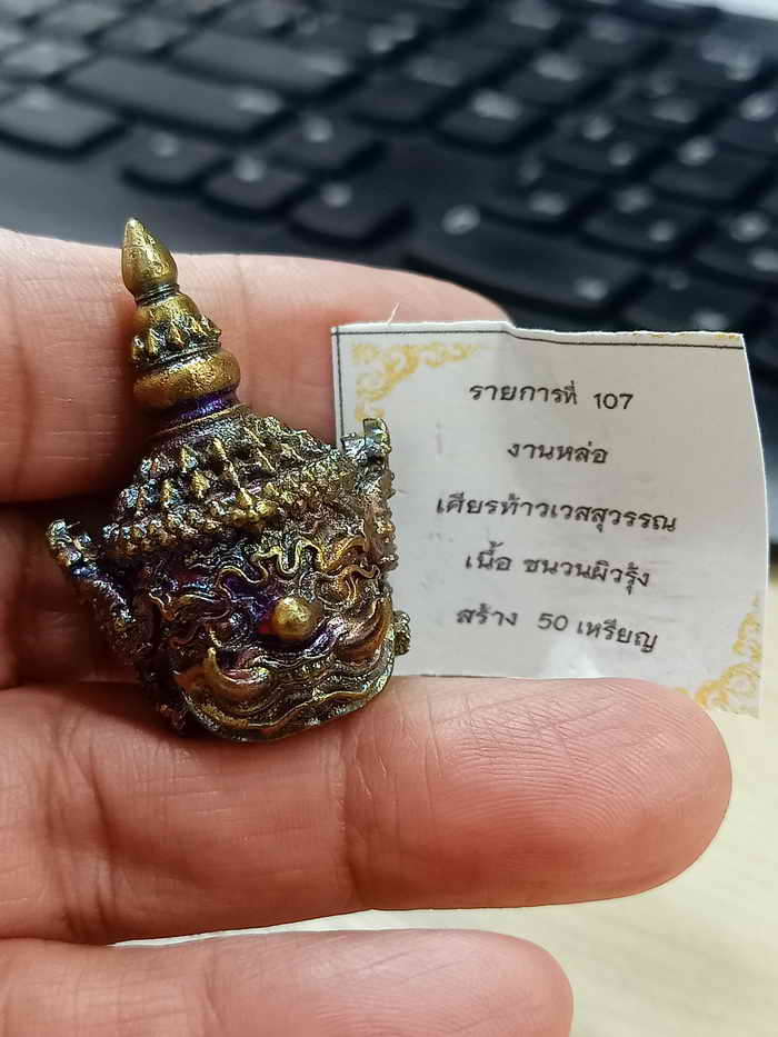 วัดใจ 100 เศียรหล่อท้าวเวสสุวรรณ รุ่นโชคดี หลวงปู่ฝั้น ปสาโท วัดศรีถมอรัตร์(หน้าผา) จ.เพชรบูรณ์ 2568 ชนวนผิวรุ้ง หมายเลข 44 สร้าง 50 กล่องเดิม |