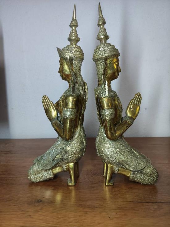 วัดใจต่ำกว่าทุนครับ เทวดาเทพพนมคู่ ( บุรุษเทพ - สตรีเทพ ) เนื้อทองเหลือง 2 กษัตริย์ หล่อตัน ขนาดความสูง 12 นิ้วครับ