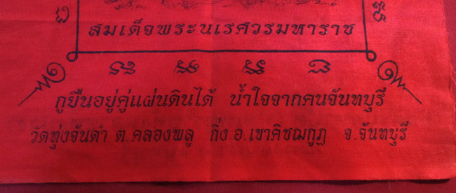 ผ้ายันต์ วัดทุ่งจันดำ ต.คลองพลู กิ่ง อ.เขาคิชฌกูฏ จ.จันทบุรี ครับ (พระบ้าน ครับ) |