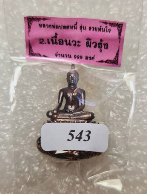 "หลวงพ่อปลดหนี้ พุทธศิลป์ถิ่นนครวาโย"พระกริ่ง สูง 3 ซม.หลวงพ่อปลดหนี้ วัดพระธาตุวาโย รุ่นรวยทันใจ เนื้อนวะ ผิวรุ้ง หมายเลข 543 พร้อมกล่องเดิม(ราคาจอง 1000 ครับ) |