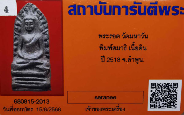 พระรอด วัดมหาวัน พิมพ์สมาธิ(มีหน้าตา) เนื้อดิน ปี2518 จ.ลำพูน + บัตรG-pra สภาพเดิมค่ะ |
