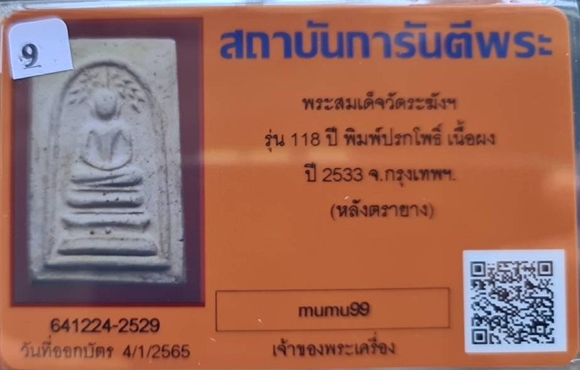 ## สมเด็จวัดระฆัง อนุสรณ์ 118ปี พ.ศ.2533 พิมพ์ปรกโพธิ์ "พระสวยเดิมไม่ผ่านการใช้.หลังปั้มตรายาง...พร้อมบัตรรับรอง.""รับประกันแท้ตลอดฃีพและแท้ตามมาตรฐานสากล....... อนาคตดี ถูกๆเลยครับ.... ราคายังไม่แรง....ไปออกต่อได้เลยครับ...แท้...ถูก...ดี...น่าเก็บมาก.. |