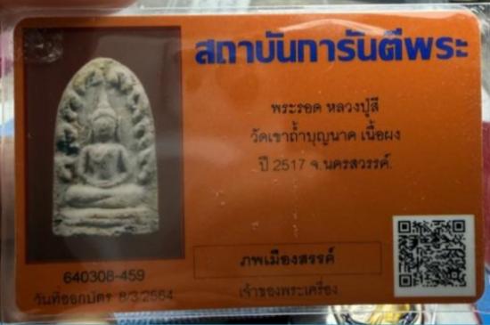 พระรอดหลวงปู่สี วัดเขาถ้ำบุญนาค เนื้อผง พร้อมบัตรการันตี G-Pra