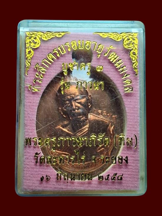 350.- หลวงปู่ทิม ห่วงเชื่อมภาวนา บูชาครู ๓ เนื้อทองแดง ตอก 3 มีหมายเลขกำกับ |