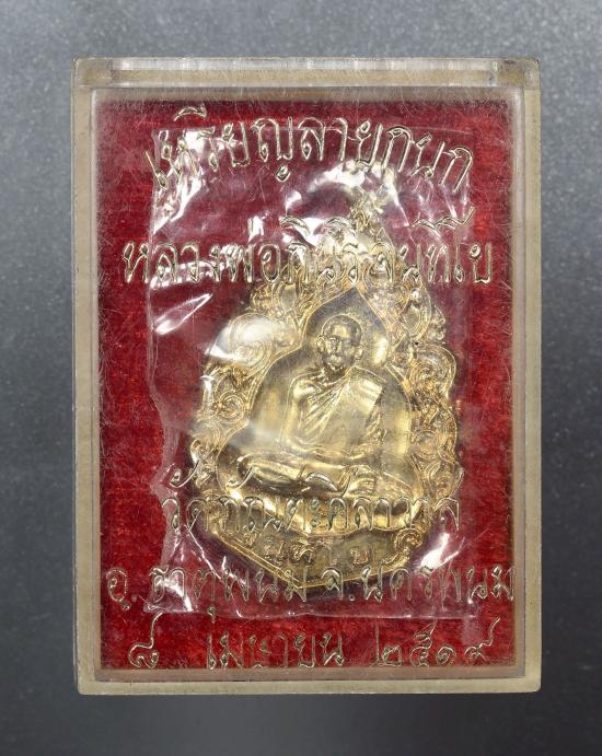 ชื่อพระเครื่อง วัดใจเคาะเดียวแดง 100 เหรียญลายกนก หลวงปู่กินรี รุ่นแรก ปี19 เนื้อกะไหล่ทอง สวยแชมป์พร้อมกล่องเดิมจากวัดเลยครับ หมายเลข 669 สภาพสวย หายากสุดๆ กะไหล่ทองเต็มๆจมูกโด่งๆ ที่เห็นไม่ชัดคือ ซิวพลาสติกป้องกั