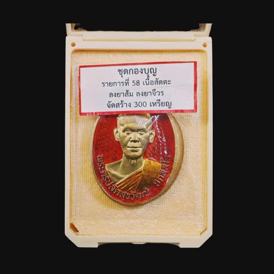 เหรียญอุดมทรัพย์ พระอาจารย์ต้อม วัดท่าสะแบง ชุดกองบุญ เนื้อสัตตะ ลงยาส้ม ลงยาจีวร ต๊อกโค้ต 15 พร้อมกล่องเดิม |