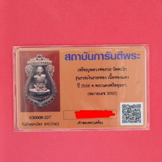 วัดใจเคาะเดียวแดงเหรียญหลวงพ่อรวยรุ่นรวยเงินรวยทองเนื้อทองแดงปี2566หมายเลข3092พร้อมบัตรรับรองสถาบันการันตีพระ |