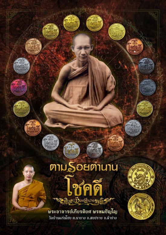 เหรียญตามรอยตำนาน โชคดี เมืองลำปาง พระอาจารย์เกียรติยศ พรหมปัญโญ วัดบ้านแก่นไชย เนื้อฝาบาตร No.1136 |