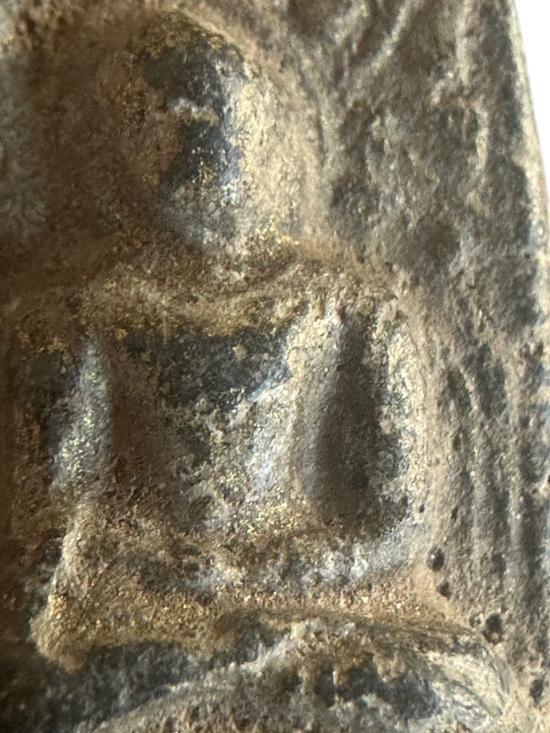 เก็บจากบ้านเดิม ฟอร์มตรงยุค เนื้อแห้งจัด ผิวละเอียดตามธรรมชาติของพระดินเก่า ด้านหลังมีคราบทองเก่าติดชัด เป็นสัญญาณว่ามีการลงทองหรือมีการบูชามานาน มวลสารแน่น มีเม็ดกรวด ผิวแกร่ง ใช้ขึ้นคอเสริมเมตตา ค้าขาย โชคลาภดีมาก องค์นี้เนื้อจัดสวยสุดในราคาเข้าถึงง่าย (เคาะเดียวแดง) |