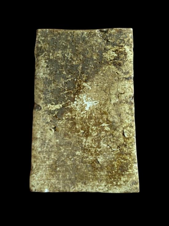 ด้านหลังเรียบแห้ง มีคราบกรุเก่าสีน้ำตาลกระจายทั่วพื้น