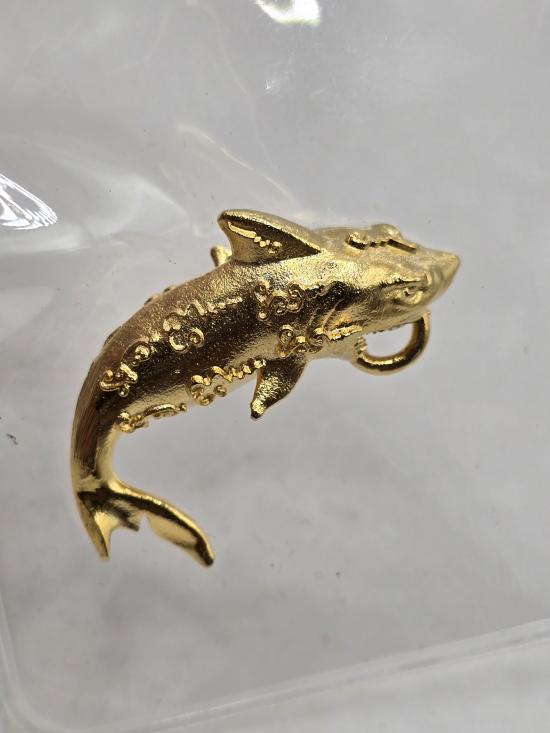 ฉลามเรียกทรัพย์ หลวงปู่มหาศิลา หลวงปู่ศิลา สิริจันโท ธรรมอุทยาน วัดพระธาตุหมื่นหิน จ.กาฬสินธุ์ เนื้อกะไหล่ทอง ชุบทองคำแท้ เลข ๑๖๔๗ ไม่มีกล่องเดิม |