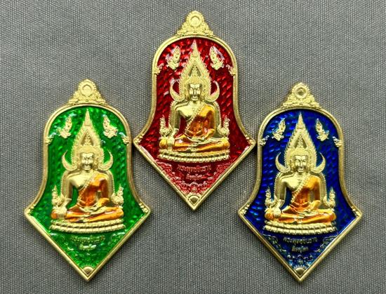เหรียญจำปีใหญ่ พระพุทธชินราชหลังท้าวเวสสุวรรณ รุ่น "โชคดี" ชุดกรรมการเนื้อทองระฆังลงยา 3 เหรียญ สุดคุ้ม 2 |