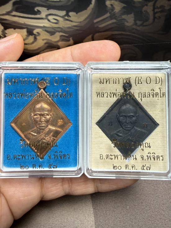 (วัดใจ 2 เหรียญ)เหรียญข้าวหลามตัด เนื้อทองแดง+ทองแดงรมดำ หลังหนุมานเชิญธง หลวงพ่อหวั่น วัดคลองคูณ จังหวัดพิจิตร รุ่นมหาปราบ EOD (แท้ทันหลวงพ่อหวั่น สร้างปี 2557) พระสวยมาก |