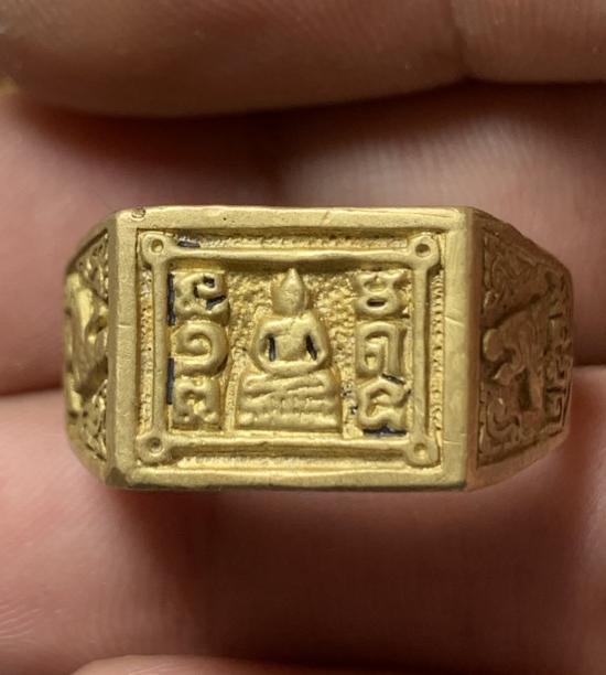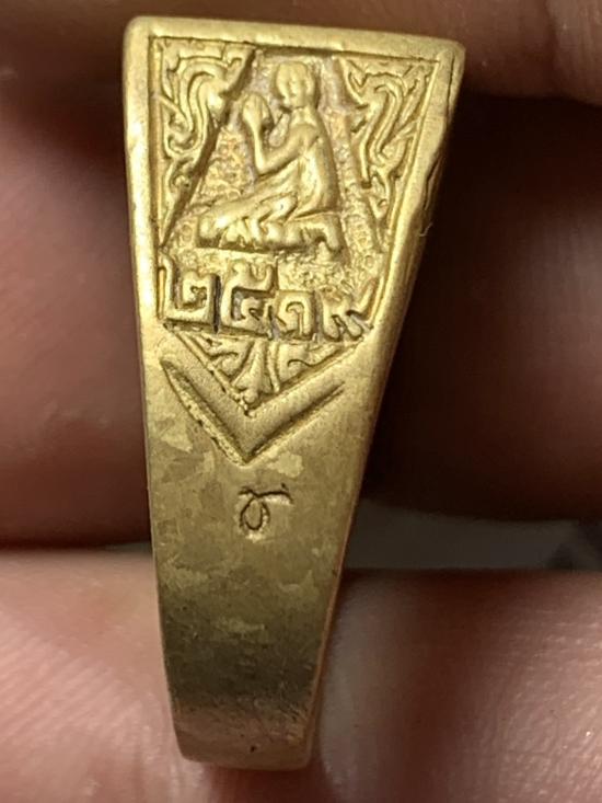 แหวนพระพุทธเนื้อโลหะ มีจาร ไม่ทราบที่ครับ |