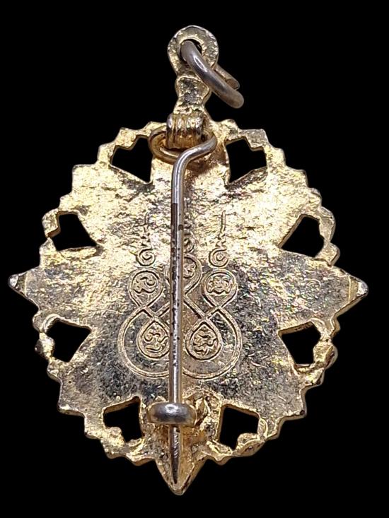 ((วัดใจ))ล็อกเก็ตครึ่งองค์หน้าหนุ่ม ที่ระลึกในงานผูกพันธสีมา วัดเจริญ พรต ( ตัวถังโลหะลายฉลุกะไหล่ทอง ลงยาธงชาติ ) พ.ศ.2531 |