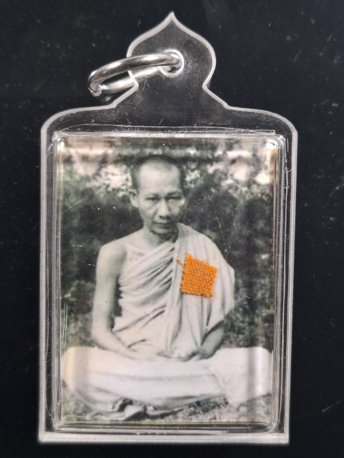รูปภาพหลวงพ่อเกษม เขมโก หลังปั้มหมึก ติดจีวร ปี2518 ขนาด 1 นิ้ว |