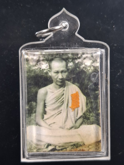 รูปภาพหลวงพ่อเกษม เขมโก หลังปั้มหมึก ติดจีวร ปี2518 ขนาด 1 นิ้ว |