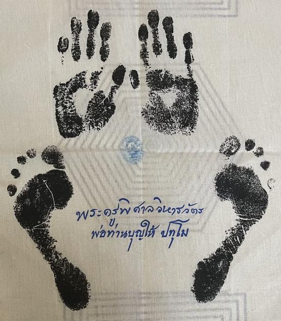 ผ้ายันต์ สกรีน รอยมือ รอยเท้า พ่อท่านบุญให้ วัดท่าม่วง |