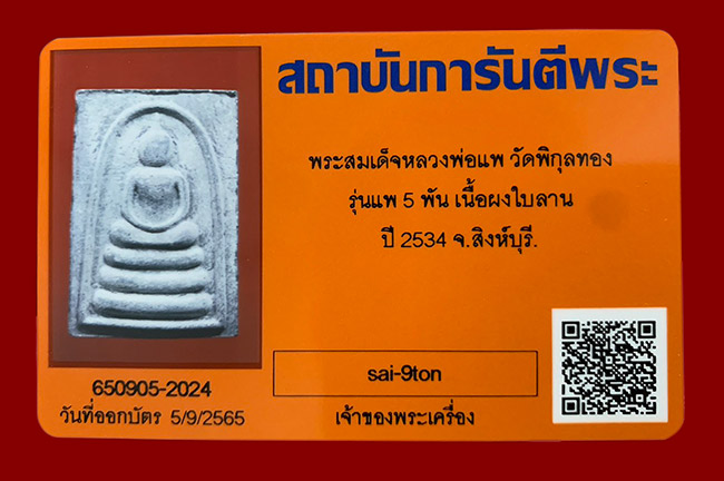 สมเด็จแพ 5 พัน หลวงพ่อแพ เนื้อใบลานสวยเต็มฟรอม .....................500