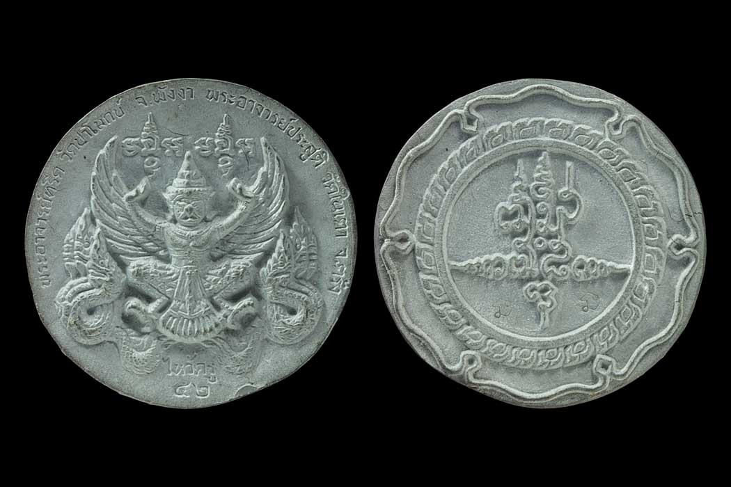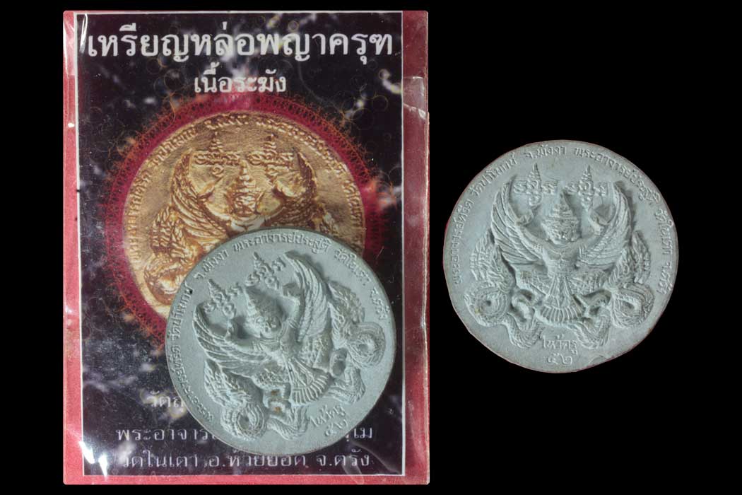 วัดใจ 2 เหรียญ เหรียญหล่อพญาครุฑ ไหว้ครู 52 พระอาจารย์ประสูติ วัดในเตา ตรัง มีซองใส่ให้อันเดียวน่ะครับ |