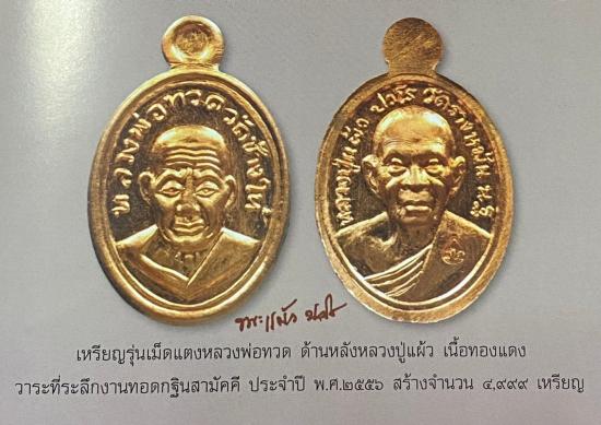 หลวงปู่แผ้ว ปวโร วัดรางหมัน เหรียญเม็ดแตงหลวงปู่ทวดหลังหลวงปู่แผ้ว (เนื้อทองเเดง)