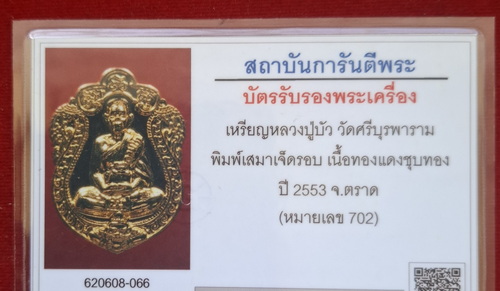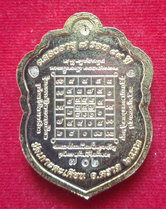 เหรียญเสมา 7 รอบ เนื้อทองแดงกะไหล่ทอง หมายเลข 702 หลวงปู่บัว ถามโก วัดศรีบุรพาราม ปี 2553