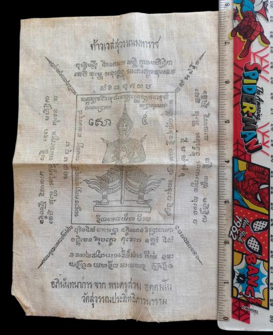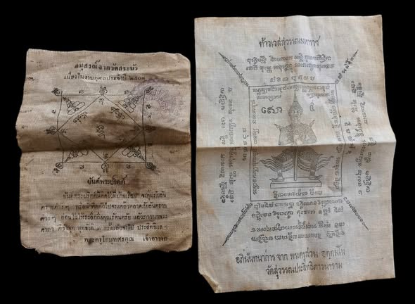 พร้อมกันทีเดียว 2 ผืน ครับ ผ้ายันต์พระปริตต์ พระครูโกมุทสรคุณ วัดสระบัว กทม. ปี 2508+ ผ้ายันต์ ท้าวเวสสุวรรณมหาราช พระครูสวน อตุตมโน วัดสุวรรณประสิทธิภาวนาราม บึงกุ่ม กรุงเทพ