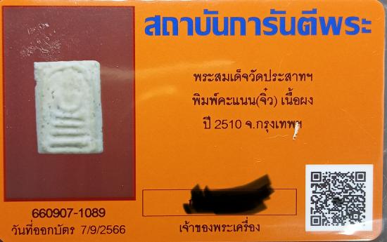 วัดใจ....พระสมเด็จวัดประสาทฯ พิมพ์คะแนน(จิ๋ว) เนื้อผง ปี2510 จ.กรุงเทพฯ พร้อมบัตรรับรอง |