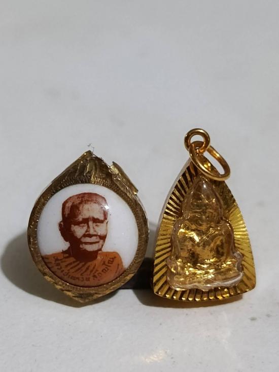 2 ชิ้น [ เลี่ยมทองคำแท้ ] ล็อกเก็ตหลวงปู่แหวน,เหรียญพระพุทธชินราช หลังยันต์ห้า