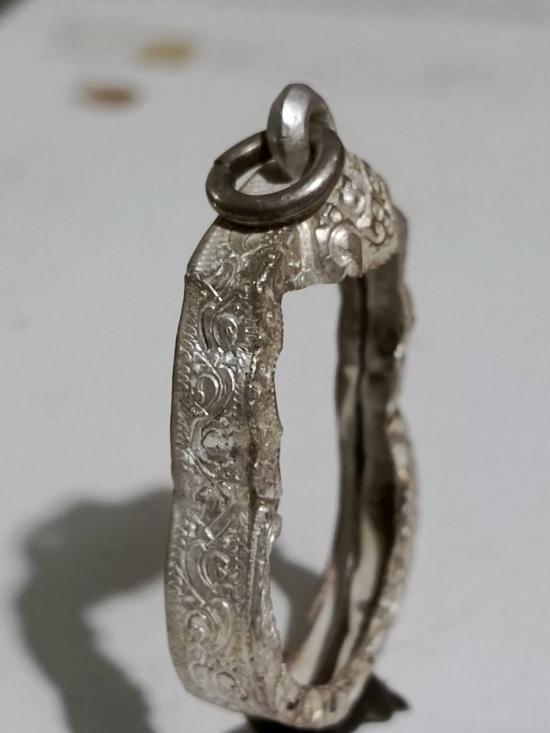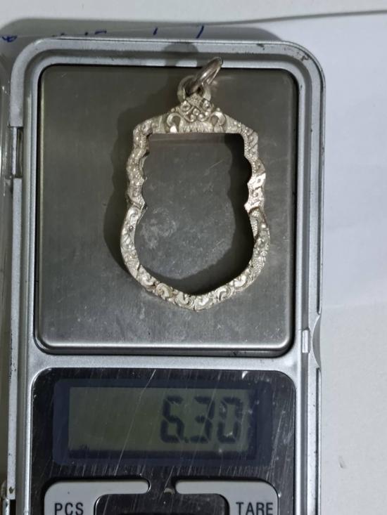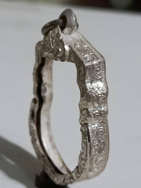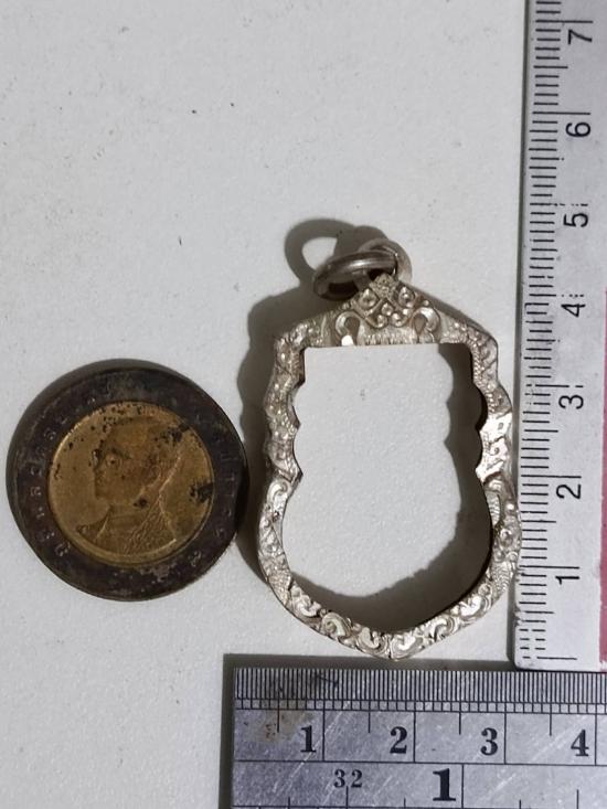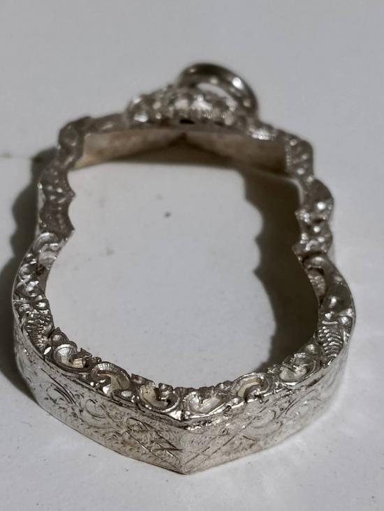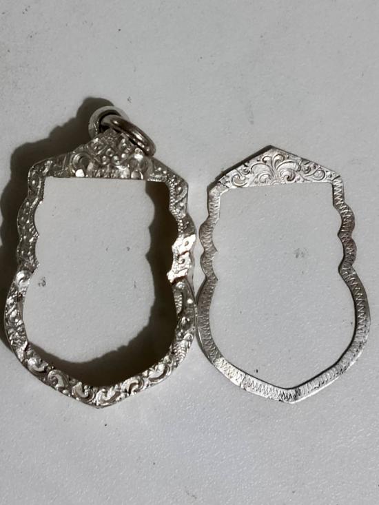กรอบเงินแท้สั่งตัด ใส่เหรียญเสมา หลวงปู่ทวด หนาหนัก 6.30 กรัม แกะลายลึก หัวสิงห์ใหญ่หนา |