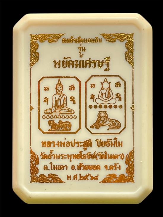 สมเด็จเสือนอนกิน รุ่น "พยัคฆ์เศรษฐี" หลวงพ่อประสูติ ปิยธัมโม วัดถ้ำพระพุทธโกษีย์ (ในเตา) จ.ตรัง เนื้อสมิงดำพยัคฆ์ องค์ดำ คำภีร์ใบลาน ฝังจีวรสายสิญจน์ ตะกรุดเงิน 5 ดอก ปฐมฤกษ์ No.61 พร้อมกล่องเดิมครับ |