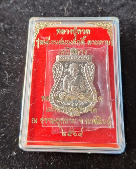 วัดใจ หลวงปู่ทวด หลวงปู่ศิลา เมตตาอธิษฐานจิต รุ่นเลื่อนสมณศักดิ์ เหนือดวง เนื้ออัลปาก้า No.894 |