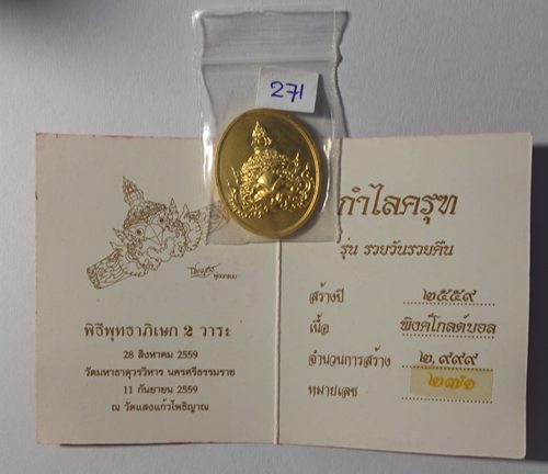 กำไลพญาครุฑ รวยวัน รวยคืน ปี 2559 หลวงพ่อวราห์ วัดโพธิทอง ครูบาอริยชาติ วัดแสงแก้วโพธิญาณ ปลุกเสก เนื้อพิ้งโกลด์บอล มีโค๊ดและหมายเลข ๒๗๑ ไม่ผ่านการใช้ มีกล่องเดิม