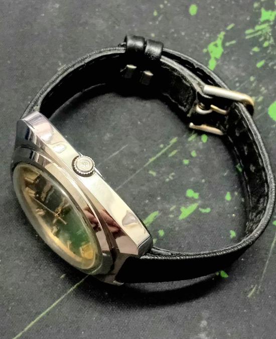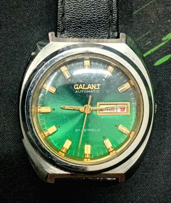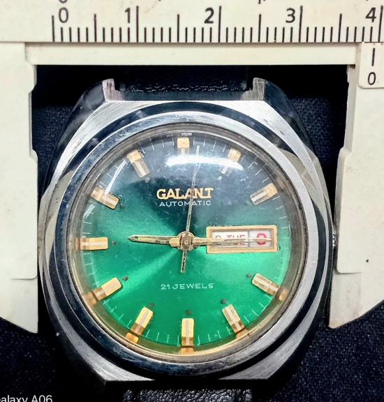 วินเทจ GALANT 9304 Automatic 21 jewels 40 หน้าทูโทนน้ำเงินเขียวเล่นแสงได้ดี เดินปกติวันที่เปลี่ยนเร็วปกติ ขนาด 40 มม.รวมเม็ดโดยประมาณ สายหนังยังใช้ได้หรือจะให้ดีก็เปลี่ยนใหม่เพราะมีรอยแตกตามอายุครับ |
