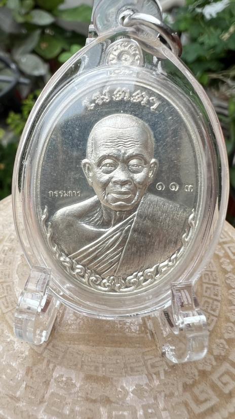 เหรียญครึ่งองค์ จีวรเฉียง รุ่นมตตา เนื้อเงิน กรรมการ เลข113 โค๊ตหมู !!! เลี่ยมเก็บผิวแล้ว เผื่อใครตามหาเก็บต่อในชุดกรรมการที่สร้างน้อยมาก