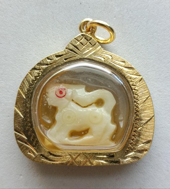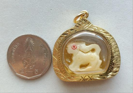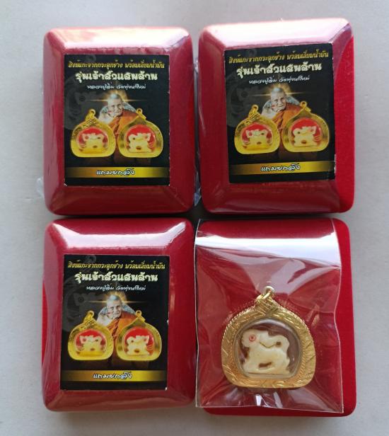 วัดใจเคาะเดียวแดงจ้า กระดูกช้างแกะรูปสิงห์แช่น้ำมัน หลวงปู่อิ่ม วัดทุ่งนาใหม่ รุ่นเจ้าสัวแสนล้าน ตัวแถมยกลัง ซีลเดิม3แกะแล้ว1 รวม4องค์ เคาะเดียวแดงจ้า