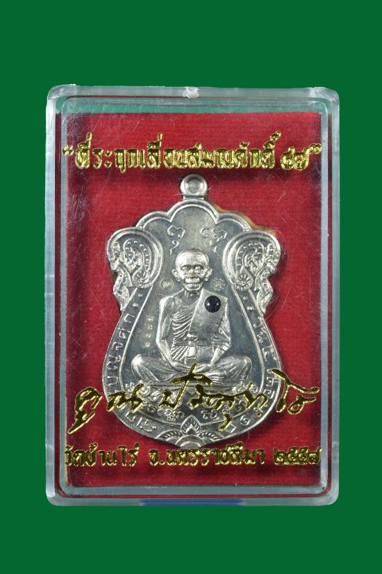 วัดใจ เหรียญเสมาเลื่อนสมณศักดิ์ หลวงพ่อคูณ วัดบ้านไร่ ปี 2557 เนื้ออัลปาก้าฝังพลอย ตอกโค้ด และหมายเลข ๒๑๗๕ พร้อมกล่องเดิมๆ |