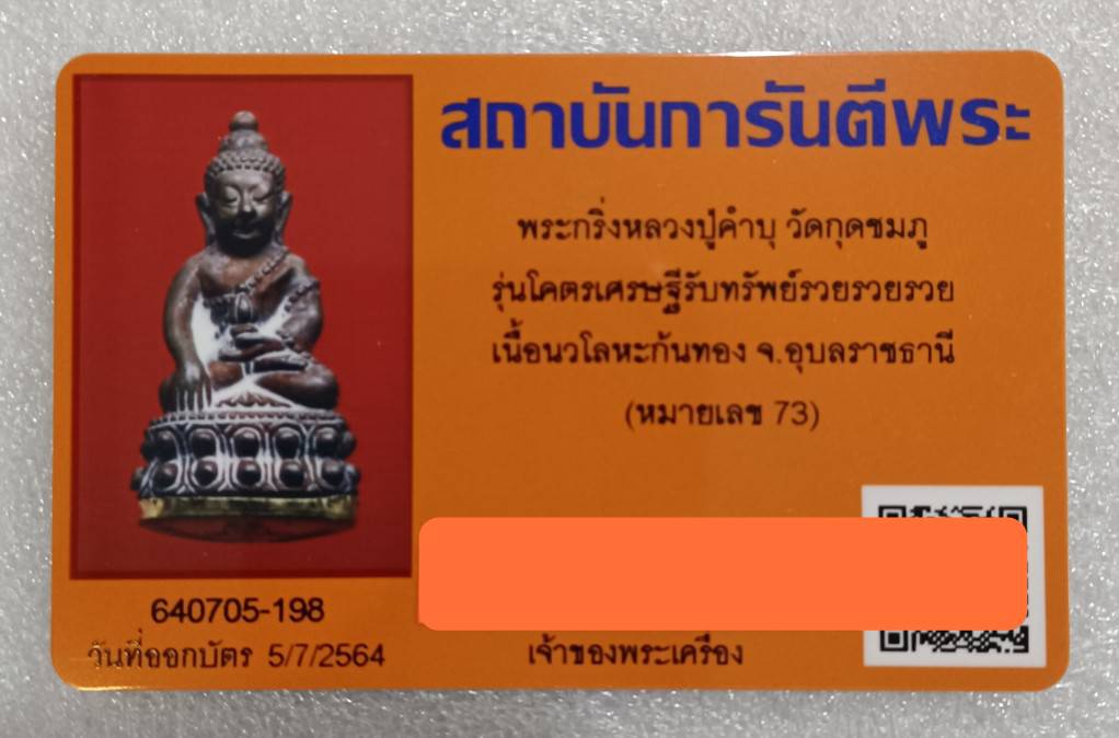 ขายก้นทองคำรูปหลวงปู่แท้แถมพระกริ่งหลวงปู่คำบุวัดกุดชมภูรุ่นโคตรเศรษฐีรับทรัพย์รวยรวยรวยเนื้อเงินก้นทองคำแท้96.07%จ.อุบลฯหมายเลข73 |