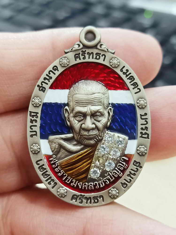 วัดใจ 100 เหรียญรวมพุทธคุณ หลวงปู่อิ่ม วัดทุ่งนาใหม่ จ.นครศรีธรรมราช 2567 อัลปาก้าซาติน ลงยาธงชาติ หน้าหลัง ฝังเพชรเต็มสังฆาฏิ หมายเลข 15 กล่องเดิม |