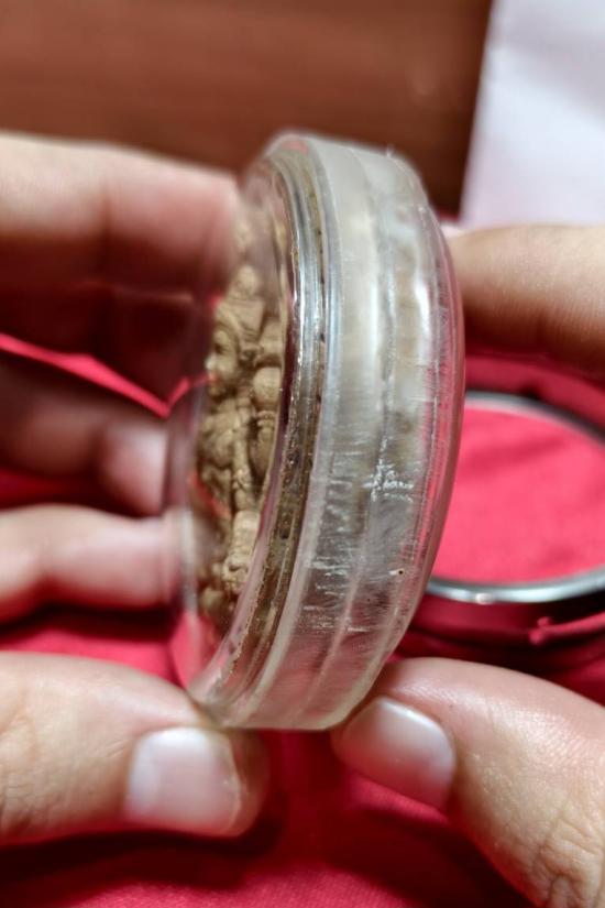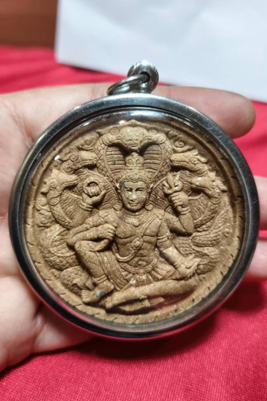 รูปแบบนั้น เป็นเอกลักษณ์เฉพาะรุ่นไม่เหมือนใคร ดูพริ้วไหวดั่งสายลม คมเขล้มดั่งสายฟ้า องค์พ่อปรางนี้เรียกว่า"ปางปาฏิหาริย์ "ครับ มี4กร ถือ ตรี จักร สังข์ คฑา องค์พ่อดูสง่างามล่ำสัน พระภักดิ์คมเข้มเปรี่ยมด้วยเมตตา พร้อมช่วยสรรพสัตว์ ด้านหลังท่านมีพญานาค 5 เศียรแผ่พังพานดูช่างน่าเกรงขามยิ่งนัก ขอบนอกสุดเป็นรูปจักรพระนารายณ์ท่านให้ความหมายว่า ปกป้องผู้บูชาจากภยันตรายทั้งปวง ด้านหลังตรงกลางสุดเป็นรูปวิวของพระบรมธาตุนครศรีธรรมราช พระมหาเจดีย์ที่บรรจุพระบรมสารีริกธาตุ แสงธรรมแห่งอาณาจักรศรีวิชัย ใต้ฐานรูปพระมหาเจดีย์ที่บรรจุพระบรมสารีริกธาตุ มีพระแม่ธรณีบีบมวยผมอยู่ด้านล่าง หลายท่านคงทราบถึงกฤติยาคมของพระเเม่ธรณีดีว่ามีคุณต่อสัตว์โลกเพียงไร ตราบใดที่เราอาศัยอยู่บนผืนธรณีนี้ควรหมั่นบูชาท่านไว้ เขาถึงจะเรียกว่ารู้คุณแผ่นดินเกิด ด้านบนซ้ายขวาเป็นรูปนกเทพพญากาวินสองตน เป็นสัตว์มหามงคลของเทพเจ้าบนสรวงสวรรค์ นกชนิดนี้จะร้องเมื่อมีข่าวดีเกิดขึ้นบนสวรรค์ (ตามตำราท่านว่าไว้) ด้านล่างซ้าย เป็นรูปพระราหูเทพเจ้าแห่งความเป็นอมตะ ป้องกันสิ่งชั่วร้าย รักษาทรัพย์ที่เกิดขึ้น ด้านล่างซ้ายเป็นรูปพณานาค สัญลักษณ์แห่งความสงบร่มเย็น ปกปักรักษาผู้บูชาครับ รุ่นนี้มีโค้ตเป็นรูปพระราหูกดจมในเนื้อ ชัดบ้างไม่ชัดบ้างตำแหน่งไม่ตรงกันทุกองค์อย่าคิดมาก รูปลักษณ์โดยรวมถือต้องตาต้องใจยิ่งนัก ประทับด้วยสิ่งมงคลต่างๆดังอธิบายไปแล้ว ในส่วนของกฤติยาคมนั้นถือว่าเป็นมงคลสูงสุด ใช้ดีทุกด้าน ถ้าพูดแบบภาษาชาวบ้านเขาว่า ไม่อดไม่อยาก ไม่ยากไม่จนไม่ต่ำกว่าคน ไม่จนกว่าใคร สมกับคำนิยามว่าขอได้ไหว้รับ เหมือนคำที่องค์พ่อเคยบอกไว้ตอนลงประทับว่าตราบใดที่น้ำทะเลยังไม่แห้ง มึงมีกูไว้ไม่จน