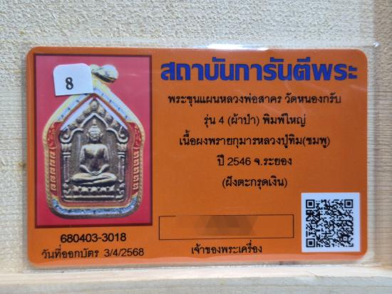 พระขุนแผนหลวงพ่อสาคร วัดหนองกรับ รุ่น 4 (ผ้าป่า) พิมพ์ใหญ่ เนื้อผงพรายกุมารหลวงปู่ทิม(ชมพู) ปี 2546 จ.ระยอง (ฝังตะกรุดเงิน) |